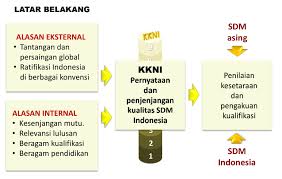 Pasal 1 Peraturan Presiden RI No.8/2012 menyatakan bahwa Kerangka Kualifikasi Nasional Indonesia (KKNI) adalah kerangka perjenjangan kualifikasi kompetensi yang menyandingkan, menyertakan, dan mengintegrasikan antara bidang pendidikan dan bidang pelatihan kerja serta pengalaman kerja dalam rangka pemberian pengakuan kompetensi kerja sesuai dengan struktur pekerjaan di berbagai sektor.
